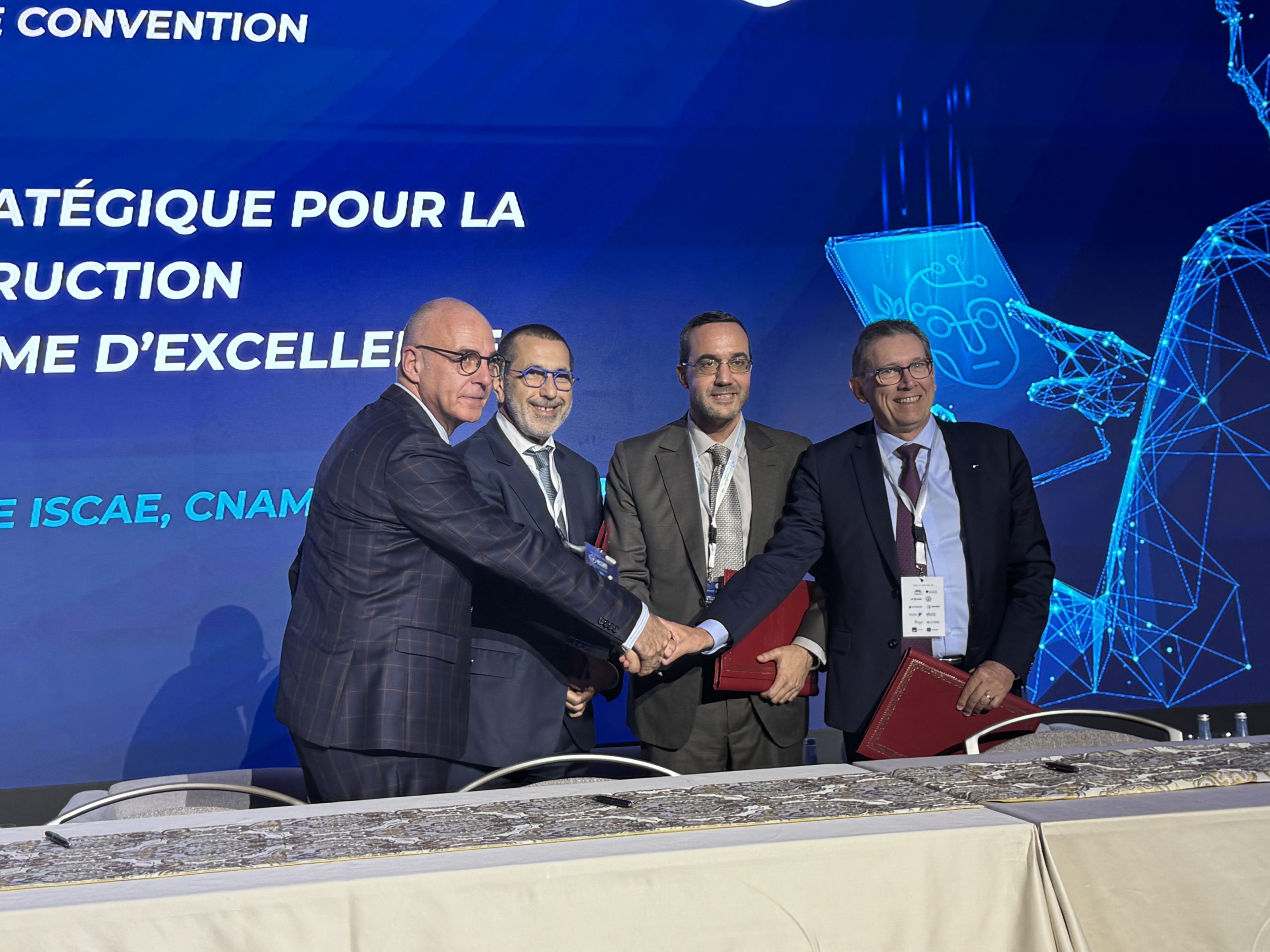 Le Groupe ISCAE a contribué avec succès aux échanges du 10ᵉ Congrès de l’Ordre des Experts-Comptables, placé sous le thème : « #IA, #Durabilité, #Talents : la stratégie gagnante ». Acteur historique et pionnier de la formation en expertise comptable, le Groupe ISCAE continue d’accompagner l’évolution de la profession, à l’heure où l’intelligence artificielle, la durabilité et les impératifs de gouvernance redéfinissent les modèles économiques et les métiers de la finance. L’ISCAE au cœur des débats sur les compétences de demain Les directeurs et professeurs du Groupe ISCAE , notamment Pr. Tarik EL MALKI, Directeur  Général du Groupe  ISCAE, Pr. Mohamed Amine ISSAMI, Directeur  du Développement, des Relations Internationales  et de la Communication, Pr. Fouad  MACHROUH, Directeur de l’ ISCAE  Rabat, Pr. Adil  BAMI, Directeur  Adjoint – Pole Académique  et Pr. Karim AARAB, Enseignant-Chercheur à l’ISCAE -Rabat, ont activement pris part aux échanges et réflexions lors du Congrès, partageant leur expertise sur les évolutions de la profession et les compétences indispensables pour l’avenir. Dans ce cadre, Pr. Adil BAMI, Responsable pédagogique du Cycle d’Expertise Comptable du Groupe ISCAE, est intervenu lors de l’atelier : « Quelle formation et quelles compétences pour l’Expert-Comptable de demain ? » Un espace d’échanges et de réflexion consacré aux nouveaux parcours de formation et aux compétences clés nécessaires pour accompagner les mutations de la profession, entre innovation, digitalisation et durabilité. De son côté, Pr. Tarik EL MALKI, Directeur Général du Groupe ISCAE, a pris part à l’atelier : « Talents : la technicité a-t-elle encore un avenir ? » Une intervention qui ouvre le débat sur les compétences de demain, la place de la technicité face aux soft skills, et les nouveaux défis auxquels doivent se préparer les futurs leaders de la profession. Des partenariats stratégiques pour renforcer la profession En marge du Congrès, le Groupe ISCAE, le Conseil National de l’Ordre des Experts-Comptables (CNOEC), la Compagnie Nationale des Commissaires aux Comptes (CNCC), le Conservatoire National des Arts et Métiers – Institut National des Techniques Économiques et Comptables (CNAM-INTEC), ainsi que l’Ordre des Experts-Comptables du Maroc (OEC-Maroc) ont procédé à la signature d’une convention de partenariat stratégique. Cette collaboration d’envergure vise à renforcer un écosystème d’excellence franco-marocain dédié à la profession comptable, à la formation, à l’innovation et à l’accompagnement des futurs talents du chiffre. Une participation qui confirme le rôle de référence de l’ISCAE La participation du Groupe ISCAE à ce congrès confirme une fois de plus son rôle de référence académique, son engagement pour la montée en compétences des professionnels et sa contribution au développement de la profession comptable au Maroc.  Nous tenons également à exprimer notre sincère gratitude à l’ensemble de l’équipe administrative pour leur mobilisation exemplaire durant les deux jours du 10ᵉ Congrès de l’Ordre des Experts-Comptables. Nos remerciements particuliers vont à Mme Jenat MESSAOUDI, Chef de Division Administrative et Financière, Mme Nawal KHOUCHAF, Mme Rajae SABRI, Chef de Service CEC à l’ISCAE-Rabat, Mme Hajar SEFRAOUI, Chef de Service CEC à l’ISCAE-Casablanca, ainsi qu’à M. Mohamed Amine ETTAHERY et Mme Soumia YAHIA, pour leur soutien constant et leur dévouement tout au long de cet événement.